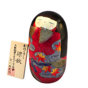 The koekshi is popular of Jpanese craft. Shimsju is spacial kokeshi.The famous koekshi craftperson, Mr. Miyagawa made it.The pained river and red leaves on wine red is very delicate and beautiful.The appearence of putting hands togeher front of face make us nostalgic.