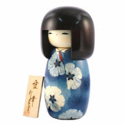 Many people love this Kokeshi made by Uzaburo.It's popular and makes us attractive. She has a beautiful bule color's Kimono. The white and light bule flowers were drawn on her Kimono. We can look red and white sleeves. It's accent of fashion.