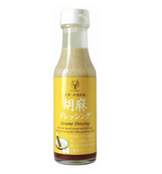 This thick dressing is made from 100% peeled white sesame , vegetable oil, soy sauce, vinegar, sugar, seeds, egg.
