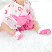 These baby socks are designed to look like you're wearing tabi socks. Easy to match with Japanese clothing such as hakama rompers and bibs, simple yet powerful Safe and secure socks made in Japan.